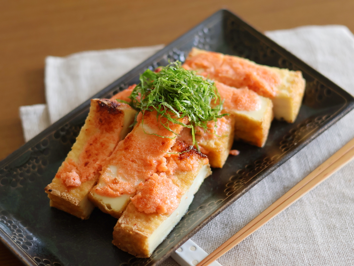 厚揚げの明太マヨ焼き|トースターで5分!絶品おつまみレシピ