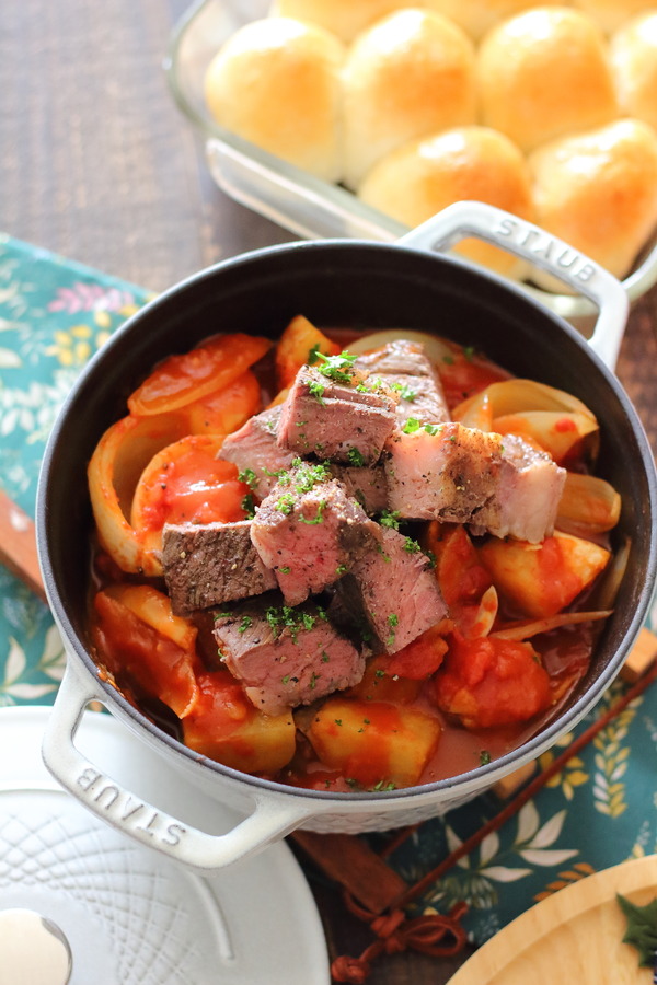 私は、2022年にこのような感じで、低温調理した牛肉とじゃがいもなどをトマトで煮込んだものや、つまみ系のツリー風、レアチーズタルトと合わせておりました