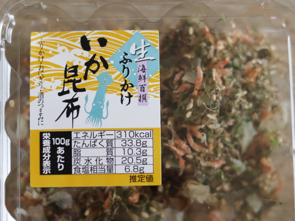 使用した、いか昆布(ソフトふりかけ)はこちらのものです。使う商品によって、食塩相当量が変わってくると思います。ちょうどよい塩加減に感じるよう、調整してくださいね。(塩こんぶ&削り節の組み合わせもおいしいです)