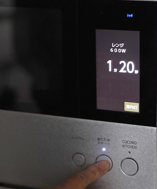 耐熱容器がガラス製で大きいものだったため、長めに時間とりました。小さいボウルや薄い保存容器を使う場合は時間を1分に設定してください。