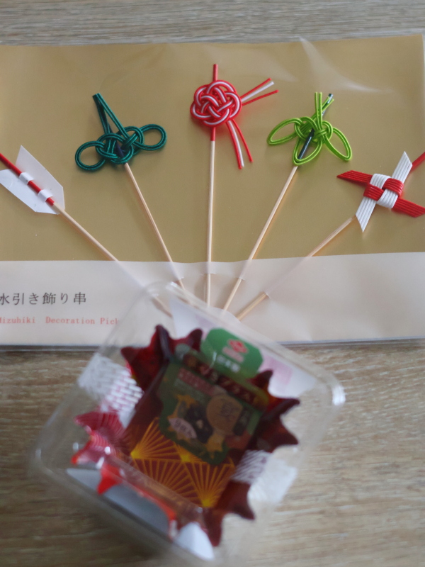 2〜3人分のお節料理を詰めるのにちょうどよいサイズ感で、冷蔵庫にも収まりやすいです。5.5寸サイズに近いので、市販の『重箱用おかずカップ』や『6寸用仕切り』が流用したすいサイズですよ(上の一番右の写真;飾りピックや重箱用おかずカップ(ダイソー商品ではありません)