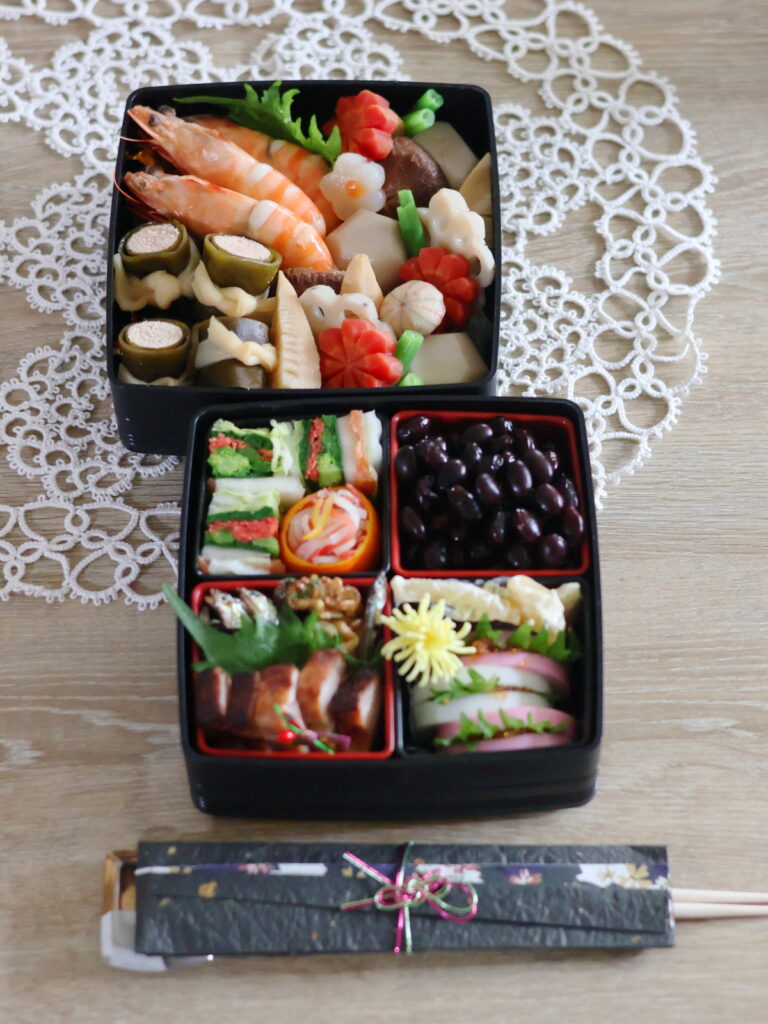 1日と2日に食べきれるような分量で、濃すぎない味付けにしています。義両親におすそわけしたのが、このコンパクトサイズのお重、ダイソー500円商品でした。メモ書き残します。