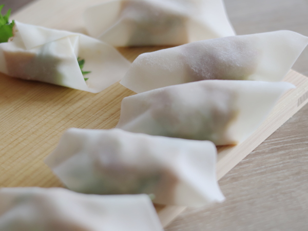 ワンタンの皮は薄くて繊細なので、600Wではなく500Wで加熱しています。600Wしか設定できない場合は、加熱時間を1割ほど短めに設定して、様子を見ながら追加加熱してください。