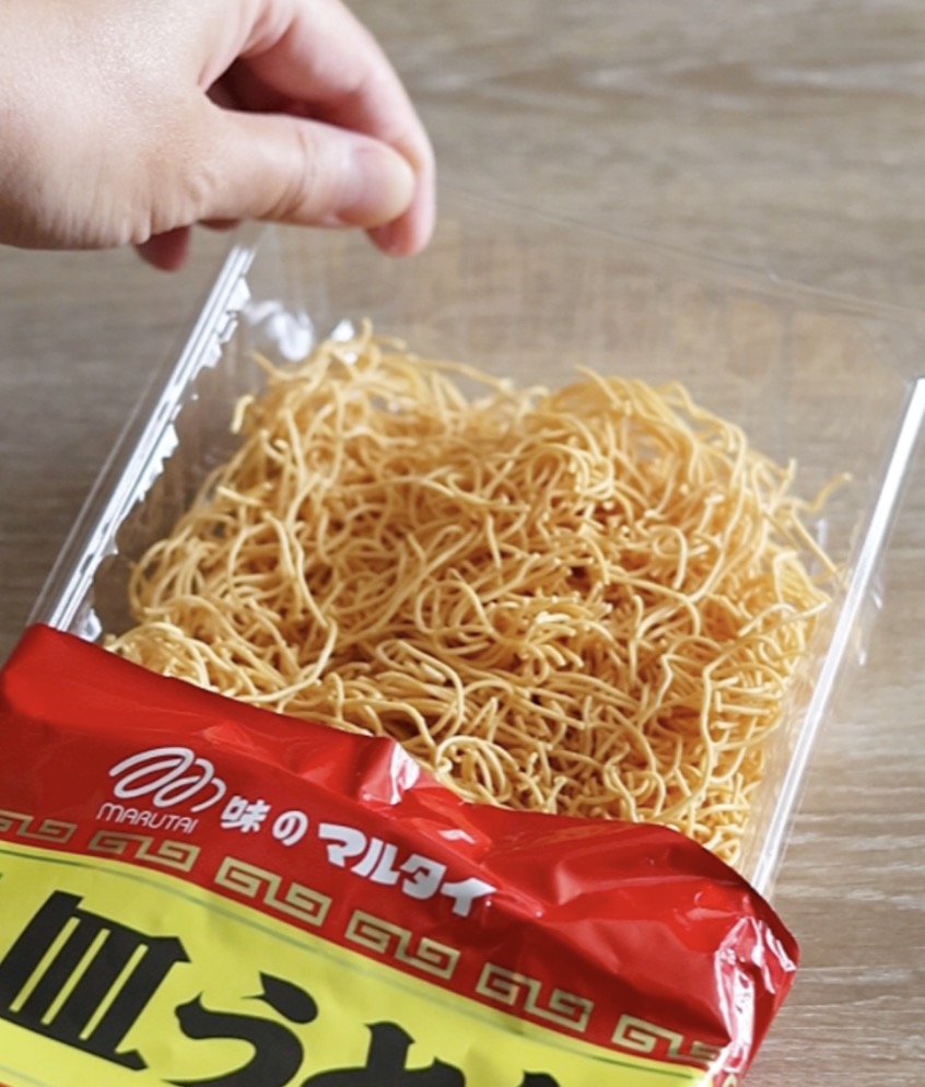 麺をあらかじめ軽く砕いておくことで、具材の多いおせち料理と一緒に口に運びやすくなり、食べやすさが向上します。袋の外側から軽く砕くと、中の麺が飛ばずに便利です。ぜひお試しください。