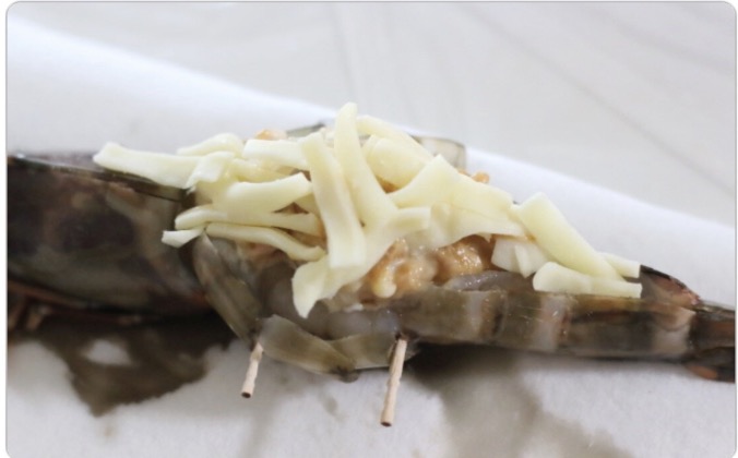 - みそ・マヨネーズ・粗切りのえびの身(←ボリュームUP)・チーズを乗せてトースター200℃で10分焼く