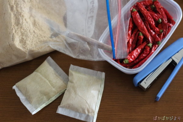 粉末がノズルに詰まるリスクを無くすために、このようにお茶パックに米ぬかを入れて、加圧調理したことがあったんです