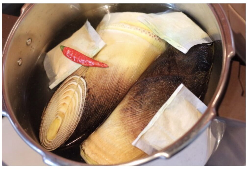 たけのこのアク抜き方法(米のとぎ汁使用)