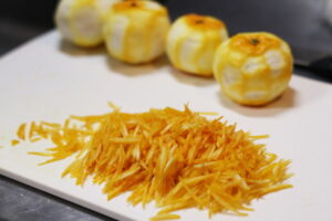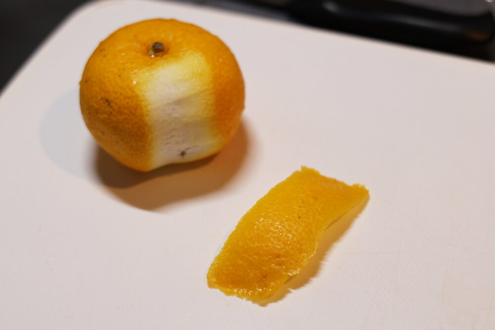 • 皮を剥き、白いワタの部分が気になれば少し削ぎ落とす(※気にならなければそのままでOK)。