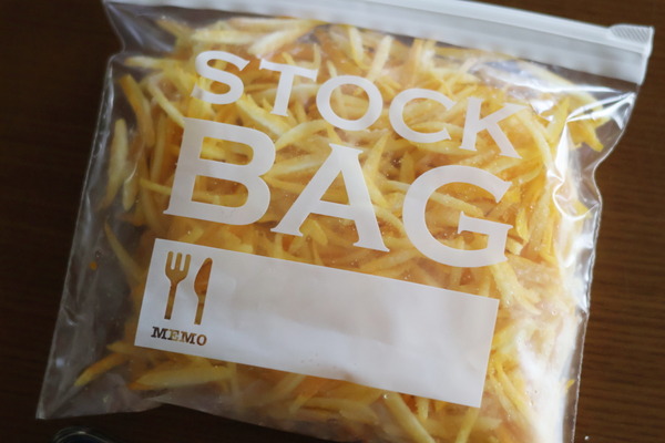 袋の中でパラパラにしておくと、使いたい時に「ひとつまみ」だけ取り出せて非常に便利です。解凍せずにそのまま料理に使えます。