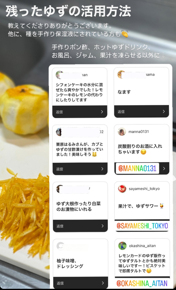 皮を使った後の「果汁」や「種」も、もちろん捨てません。インスタグラムでフォロワーの皆さんに聞いた素敵なアイデアや、私の定番の使い道を紹介します。